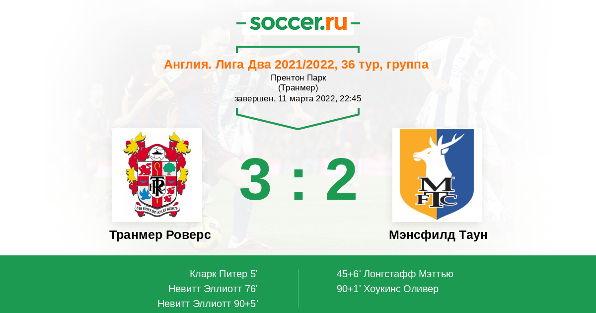 Протокол матча Транмер Роверс против Мэнсфилд Таун