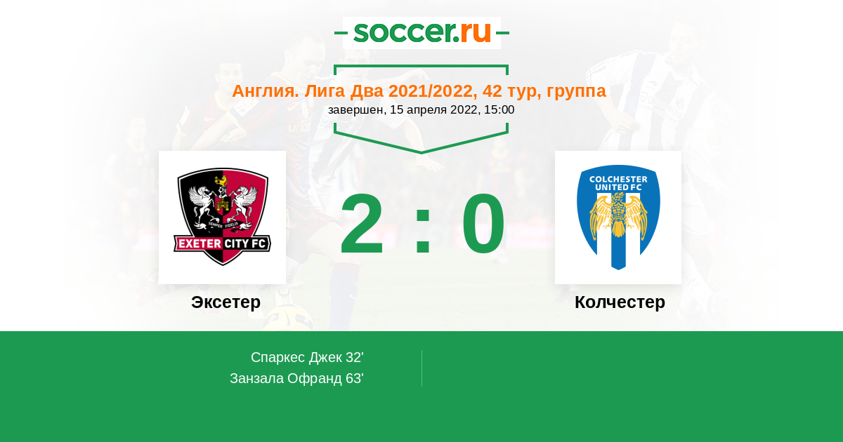 Протокол матча Эксетер против Колчестер