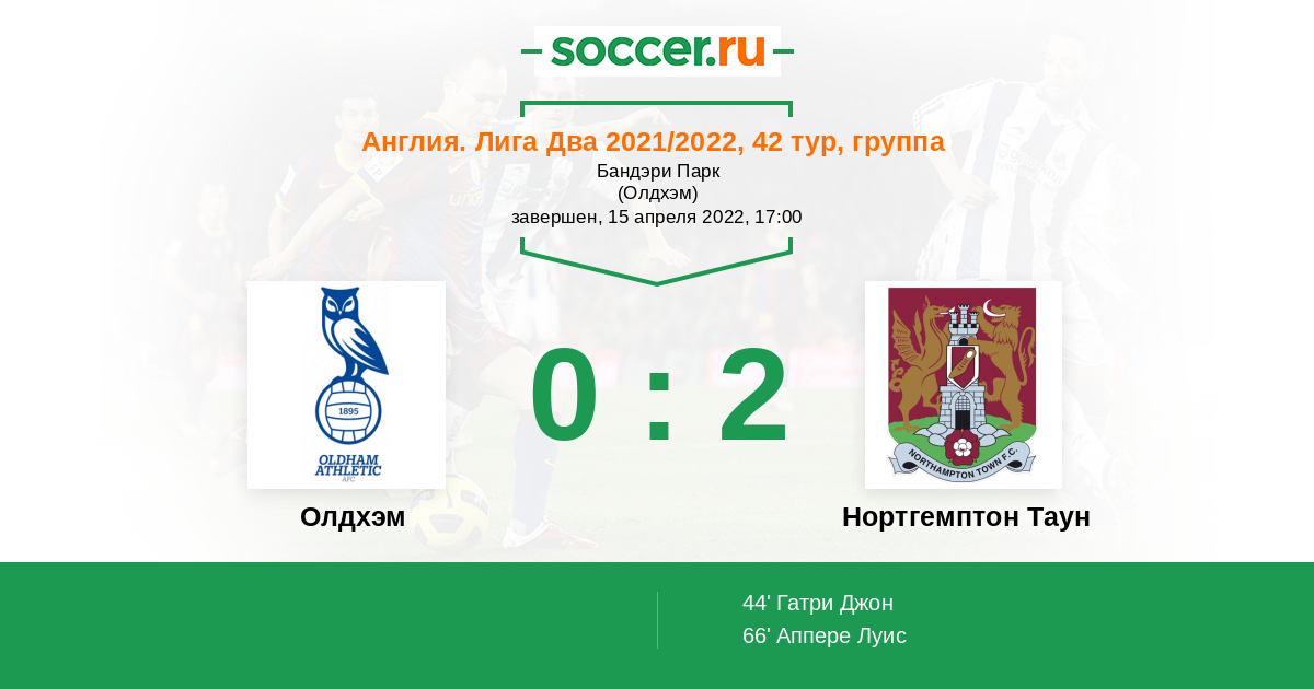 Протокол матча Олдхэм против Нортгемптон Таун