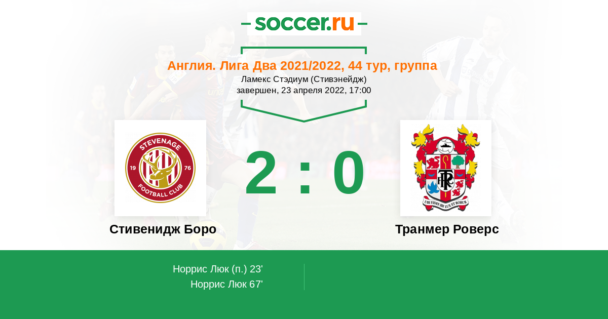 Протокол матча Стивенидж Боро против Транмер Роверс