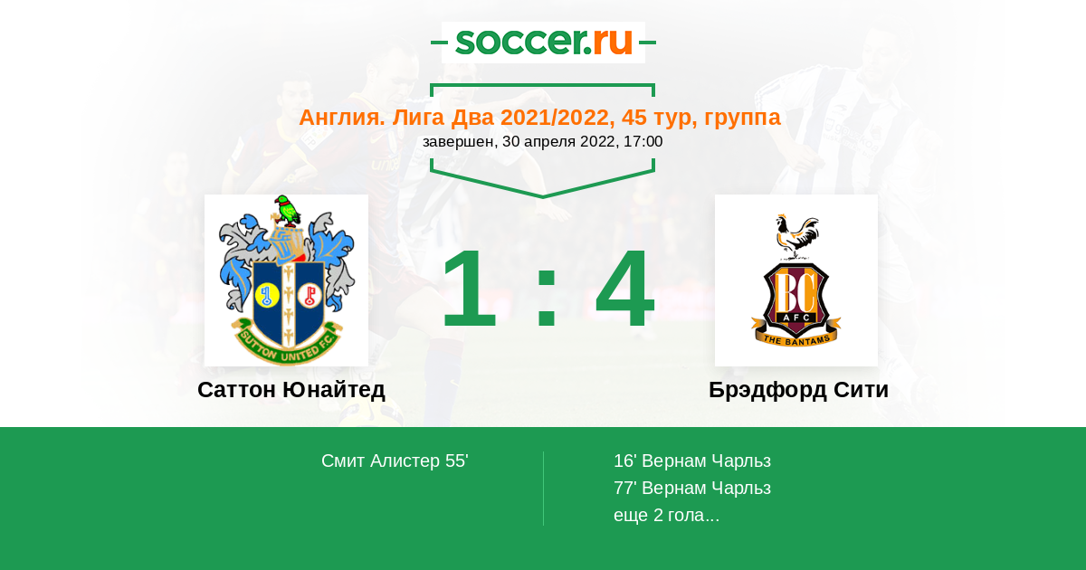 Протокол матча Саттон Юнайтед против Брэдфорд Сити