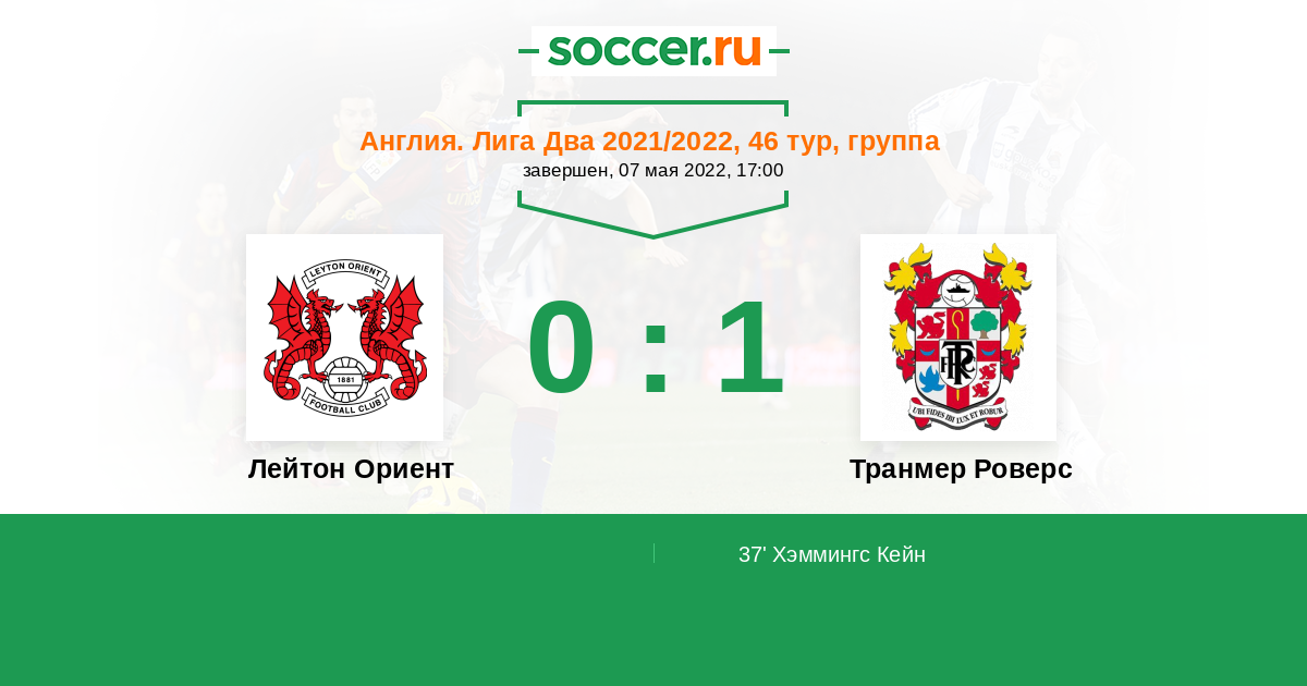 Протокол матча Лейтон Ориент против Транмер Роверс