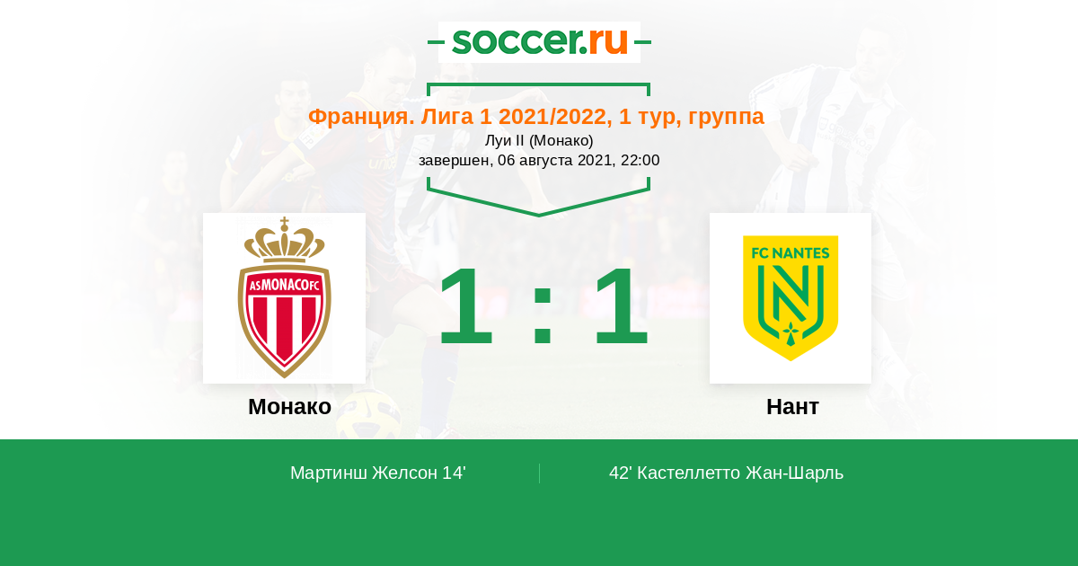Протокол матча Монако против Нант