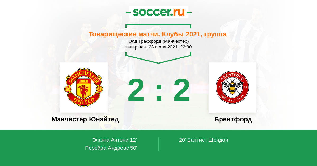 Протокол матча Манчестер Юнайтед против Брентфорд