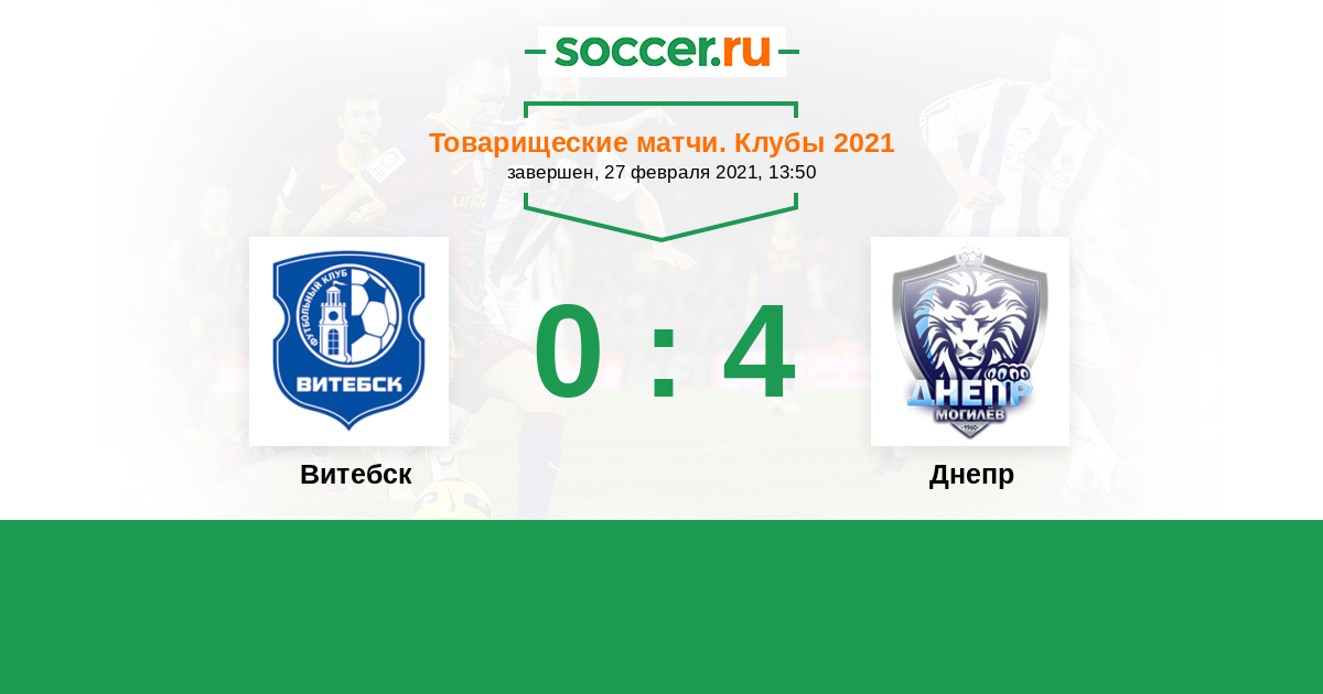 Беларусь. Высшая лига 08.04.2017 Витебск Логотип футбольный клуб Витебск 0:4 Логотип футбольный клуб Днепр (Могилев) Днепр