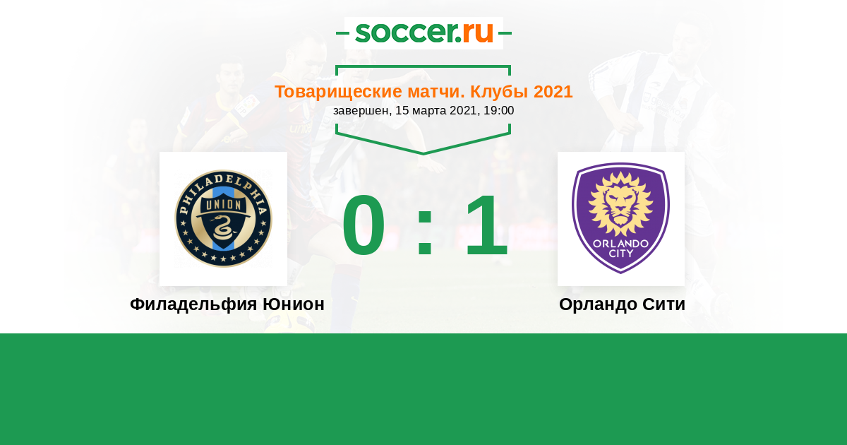 Товарищеские матчи. Клубы 24.03.2021 Орландо Сити Логотип футбольный клуб Орландо Сити 3:1 Логотип футбольный клуб Филадельфия Юнион Филадельфия Юнион