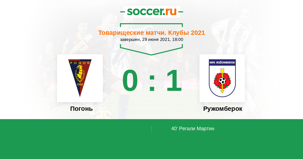 Протокол матча Погонь против Ружомберок