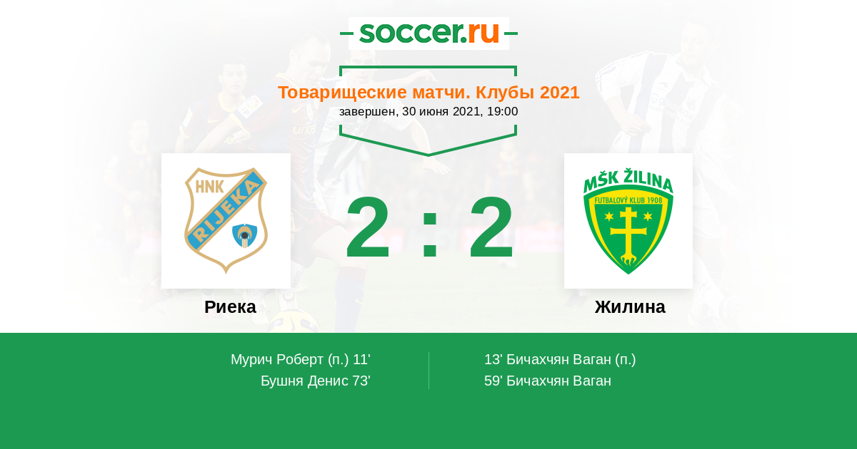 Протокол матча Риека против Жилина