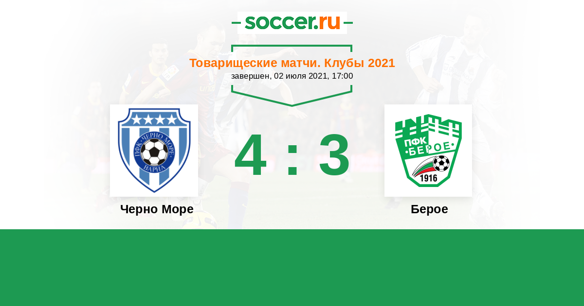 Болгария. Первая лига 19.09.2020 Берое Логотип футбольный клуб Берое (Стара-Загора) 4:0 Логотип футбольный клуб Черно Море (Варна) Черно Море