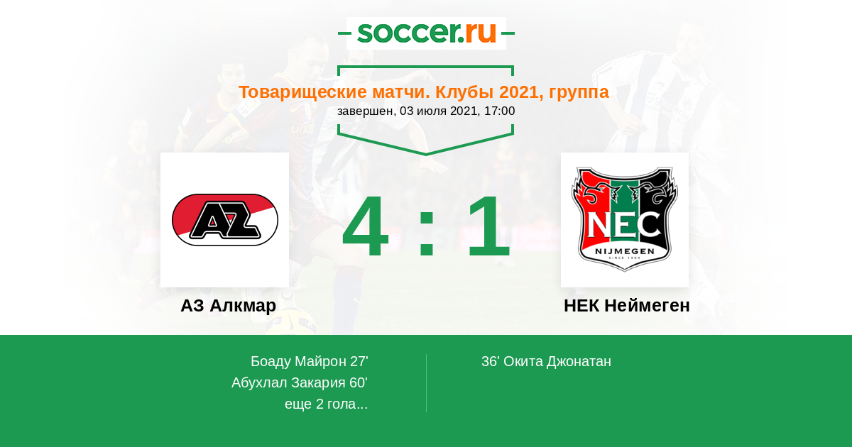 Протокол матча АЗ Алкмар против НЕК Неймеген