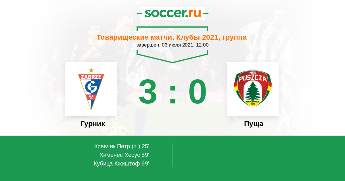 Протокол матча Гурник против Пуща