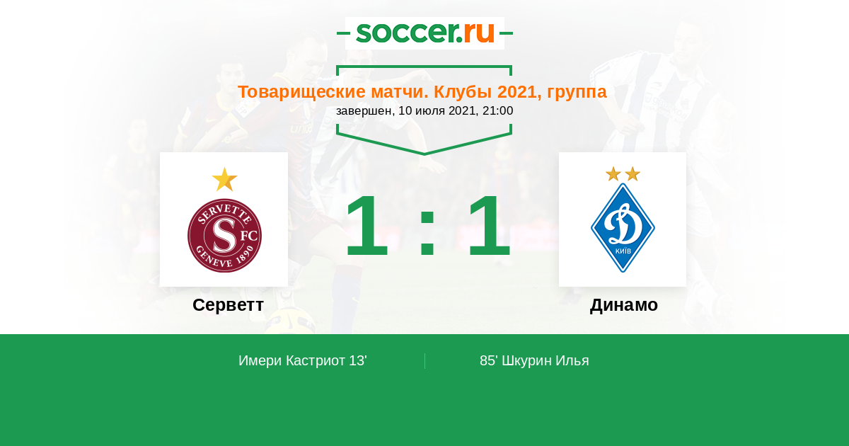 Протокол матча Серветт против Динамо