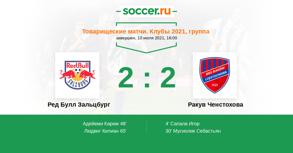 Протокол матча Ред Булл Зальцбург против Ракув Ченстохова