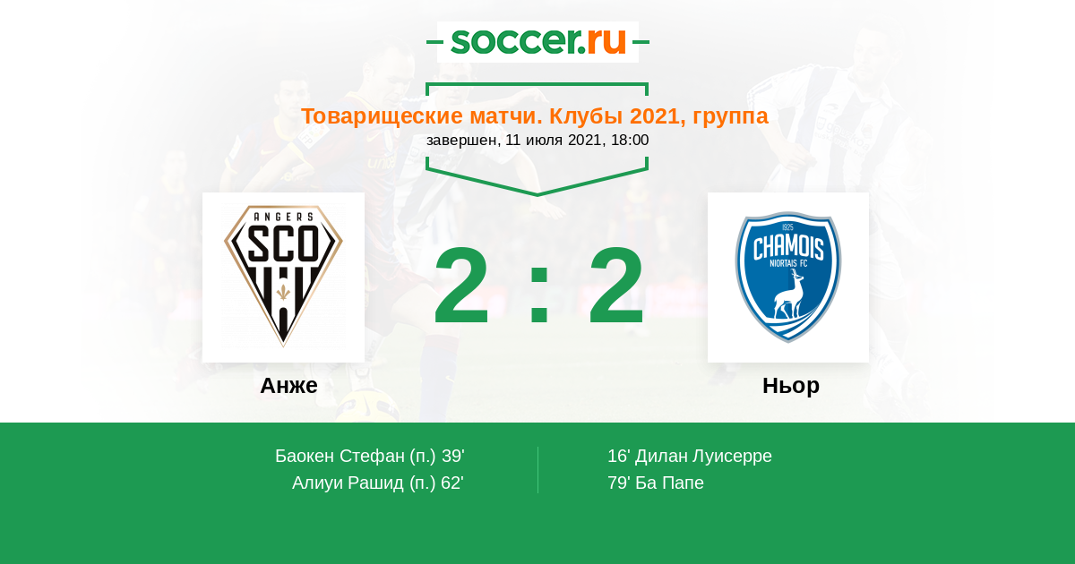 Протокол матча Анже против Ньор