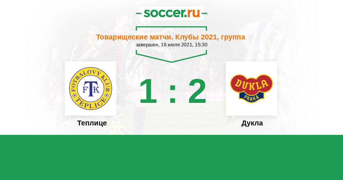 Чехия. Первая Лига 29.07.2018 Теплице Логотип футбольный клуб Теплице 5:2 Логотип футбольный клуб Дукла (Прага) Дукла