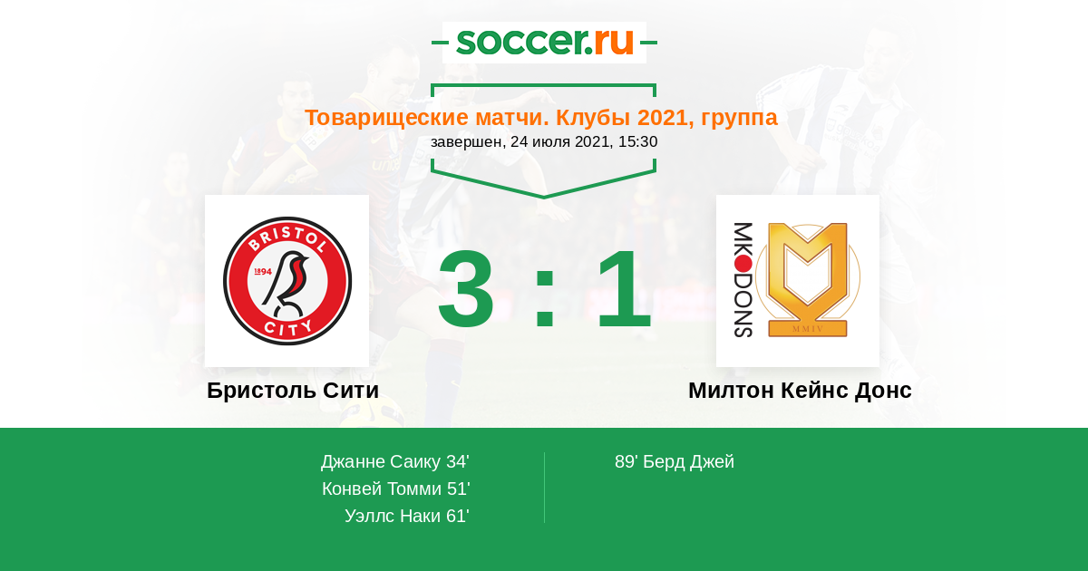 Протокол матча Бристоль Сити против Милтон Кейнс Донс