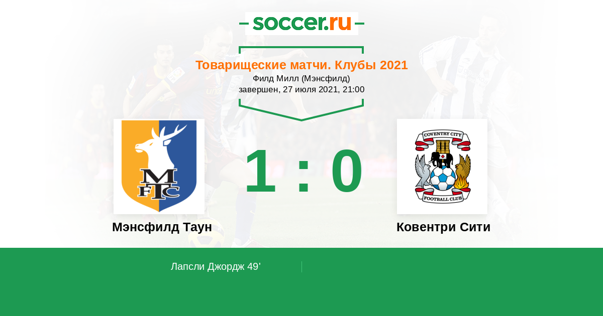 Протокол матча Мэнсфилд Таун против Ковентри Сити