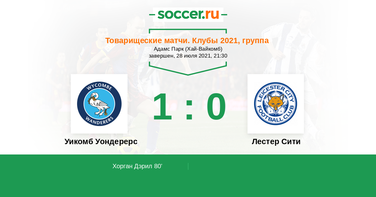 Протокол матча Уикомб Уондерерс против Лестер Сити