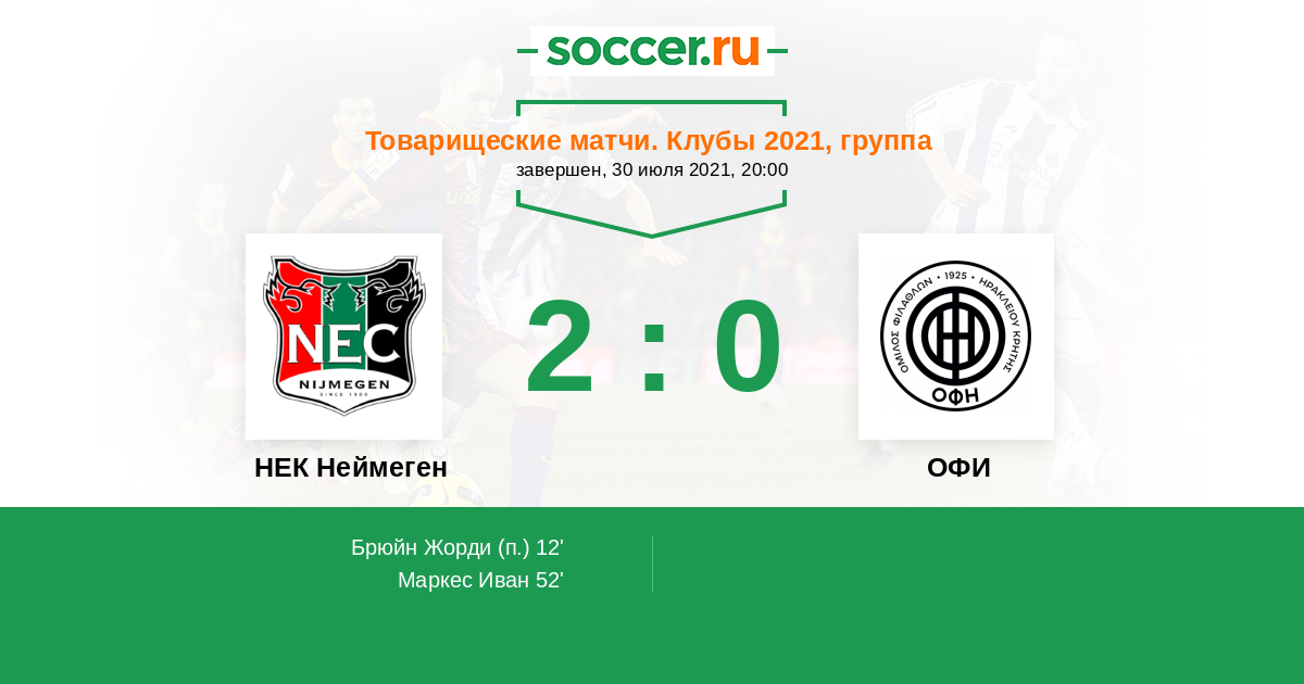 Протокол матча НЕК Неймеген против ОФИ
