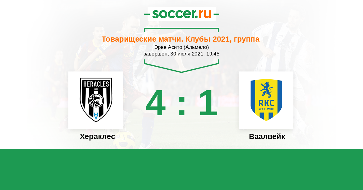 Товарищеские матчи. Клубы 02.08.2025 Хераклес Логотип футбольный клуб Хераклес (Алмело) 3:1 Логотип футбольный клуб Ваалвейк (Валвейк) Ваалвейк