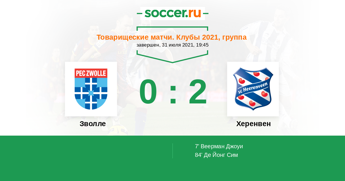 Протокол матча Зволле против Херенвен