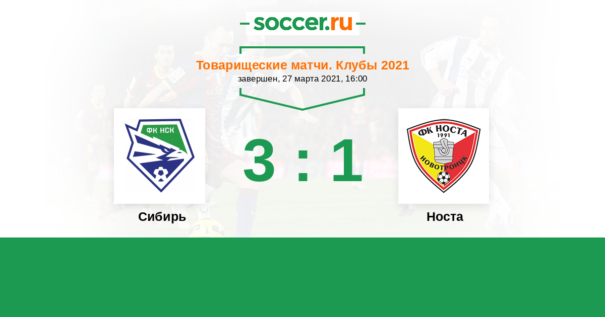 Россия. Вторая лига. Группа 4 12.06.2021 Сибирь Логотип футбольный клуб Сибирь (Новосибирск) 1:0 Логотип футбольный клуб Носта (Новотроицк) Носта
