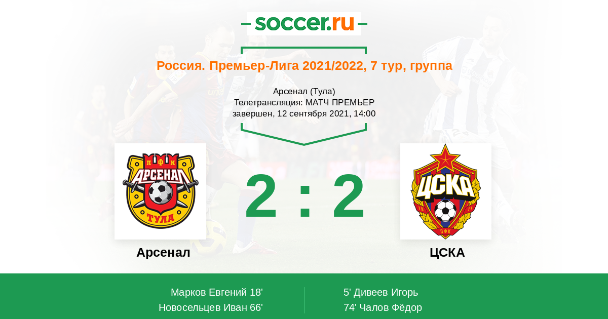 Протокол матча Арсенал против ЦСКА
