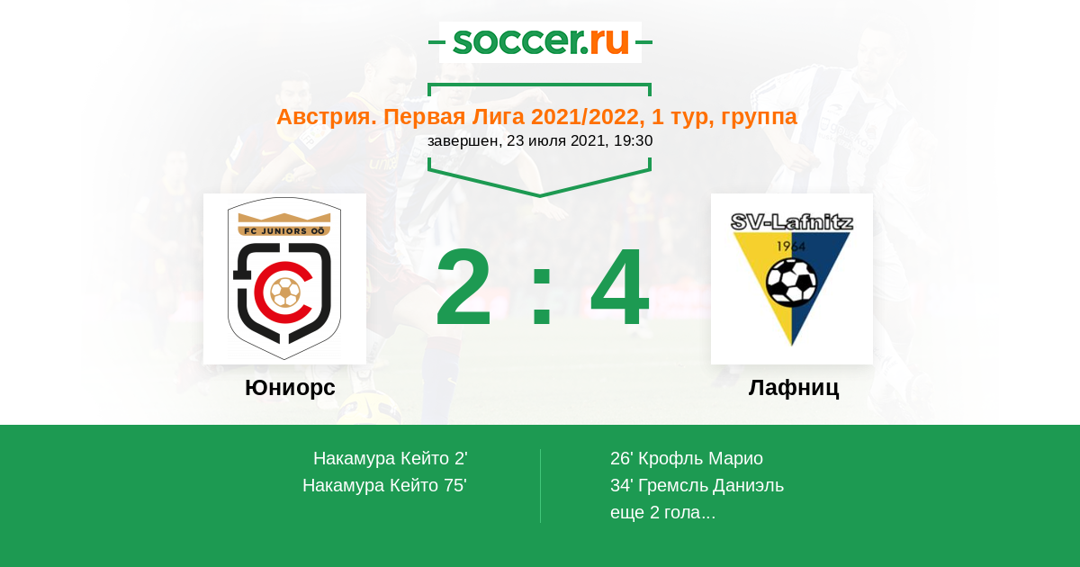 Протокол матча Юниорс против Лафниц