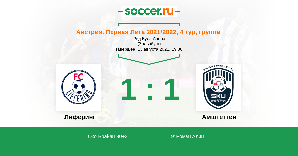 Протокол матча Лиферинг против Амштеттен