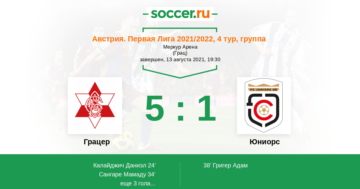 Протокол матча Грацер против Юниорс