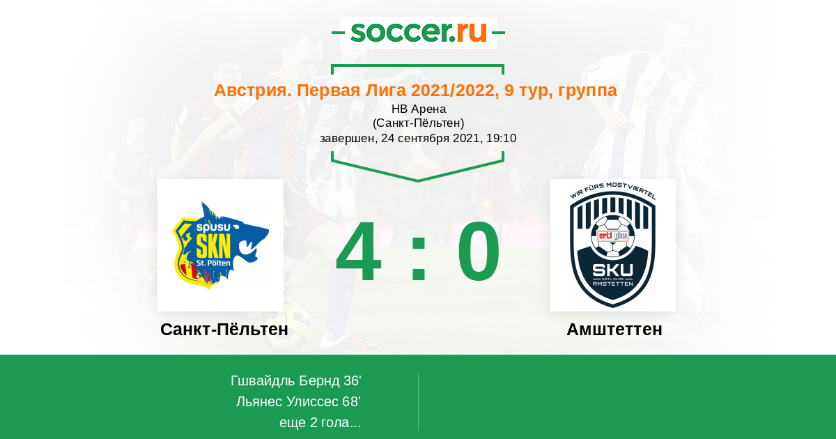 Протокол матча Санкт-Пёльтен против Амштеттен