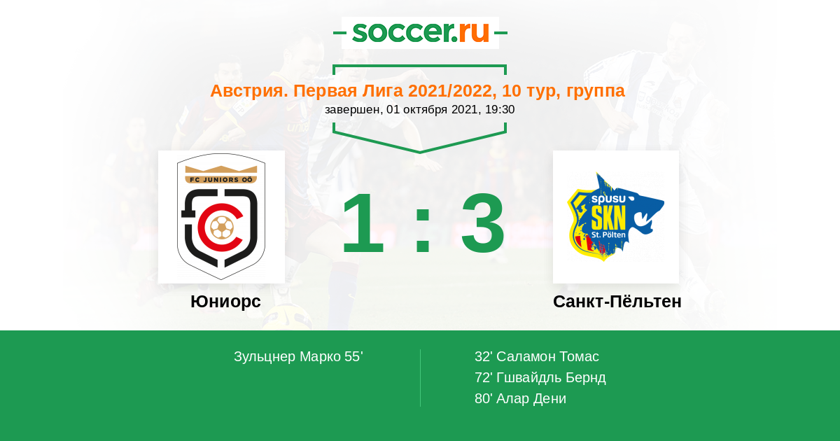 Протокол матча Юниорс против Санкт-Пёльтен