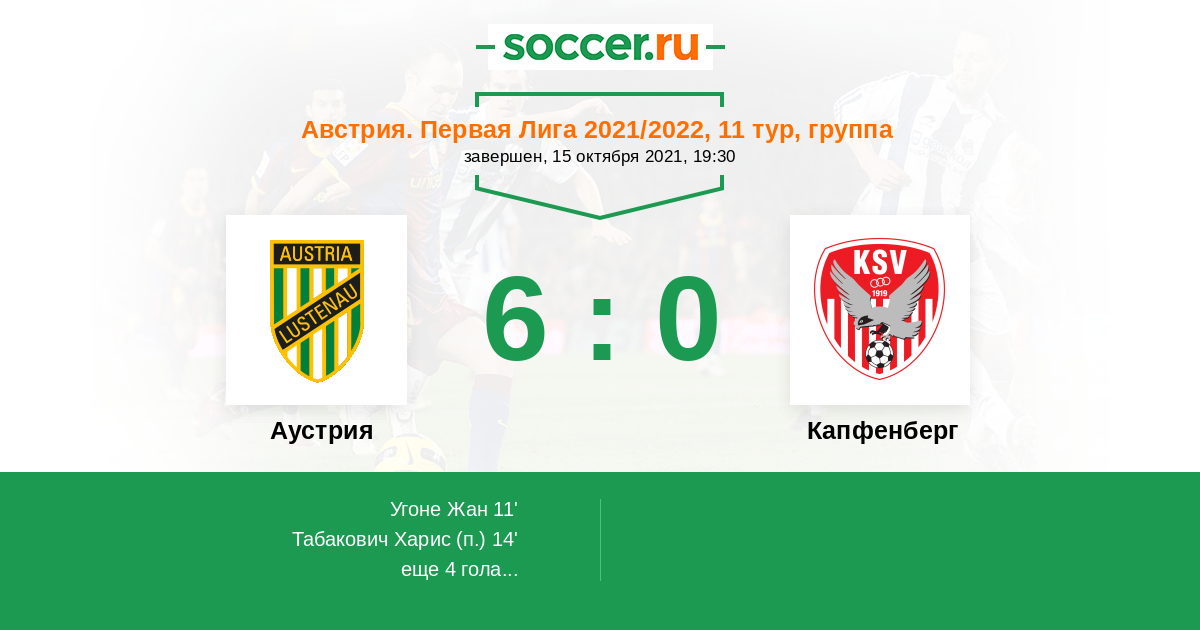 Протокол матча Аустрия против Капфенберг