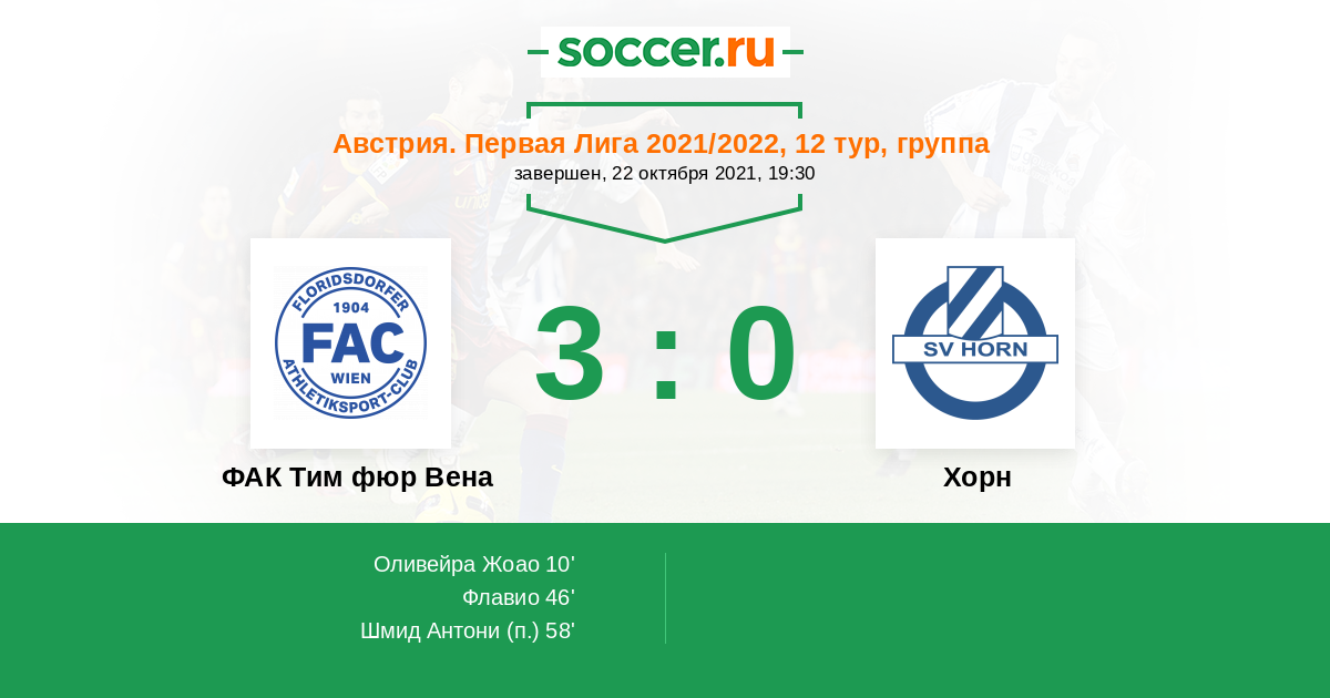 Протокол матча ФАК Тим фюр Вена против Хорн