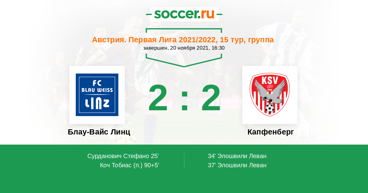 Протокол матча Блау-Вайс Линц против Капфенберг