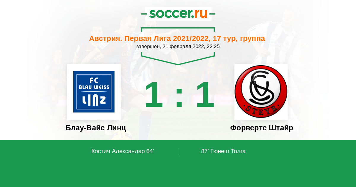 Протокол матча Блау-Вайс Линц против Форвертс Штайр
