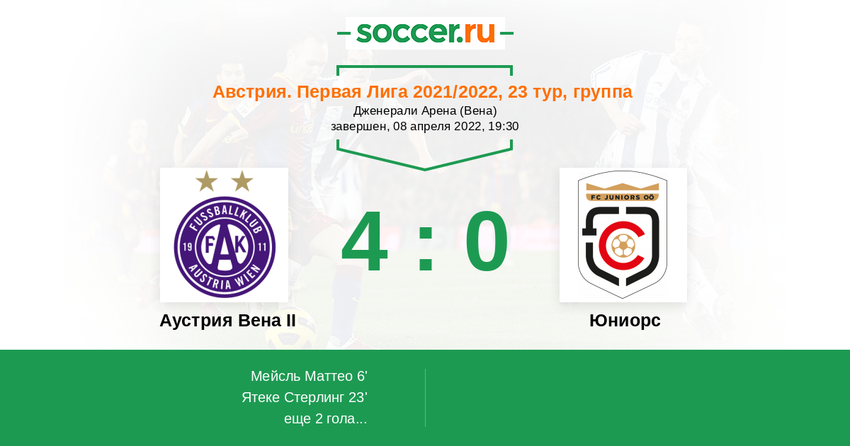Протокол матча Аустрия Вена II против Юниорс