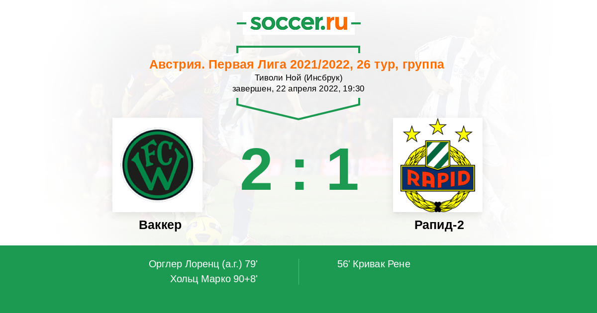 Протокол матча Ваккер против Рапид-2