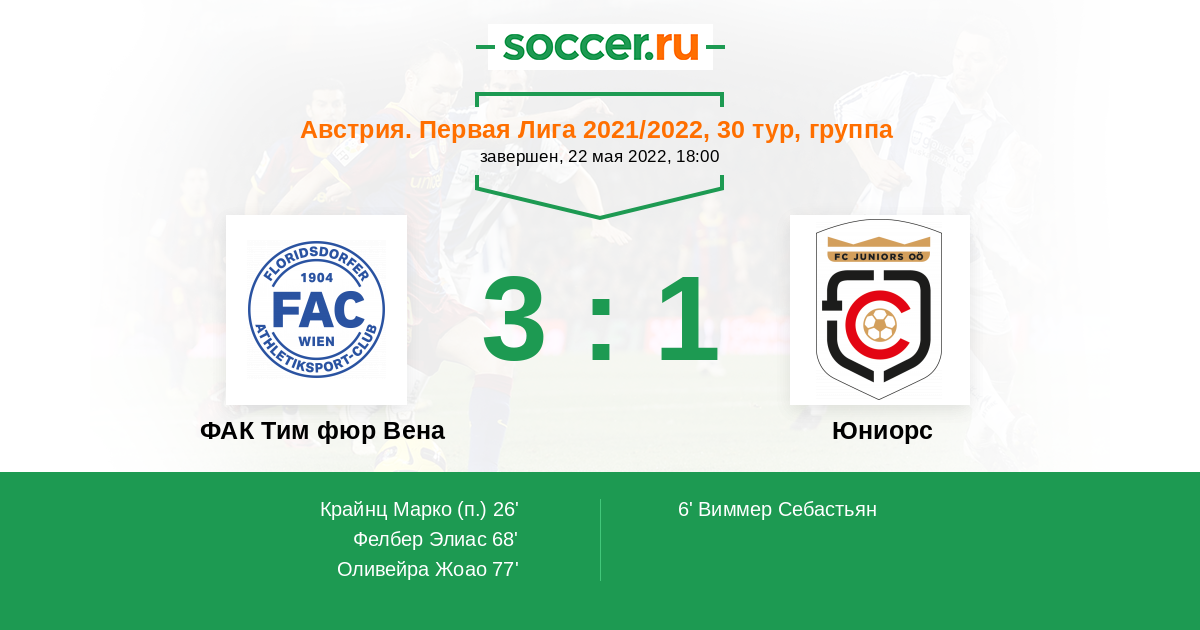 Протокол матча ФАК Тим фюр Вена против Юниорс