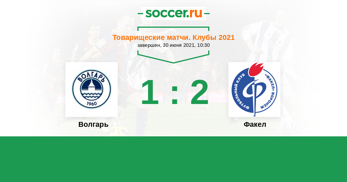 Товарищеские матчи. Клубы 17.02.2021 Волгарь Логотип футбольный клуб Волгарь (Астрахань) 0:0 Логотип футбольный клуб Факел (Воронеж) Факел