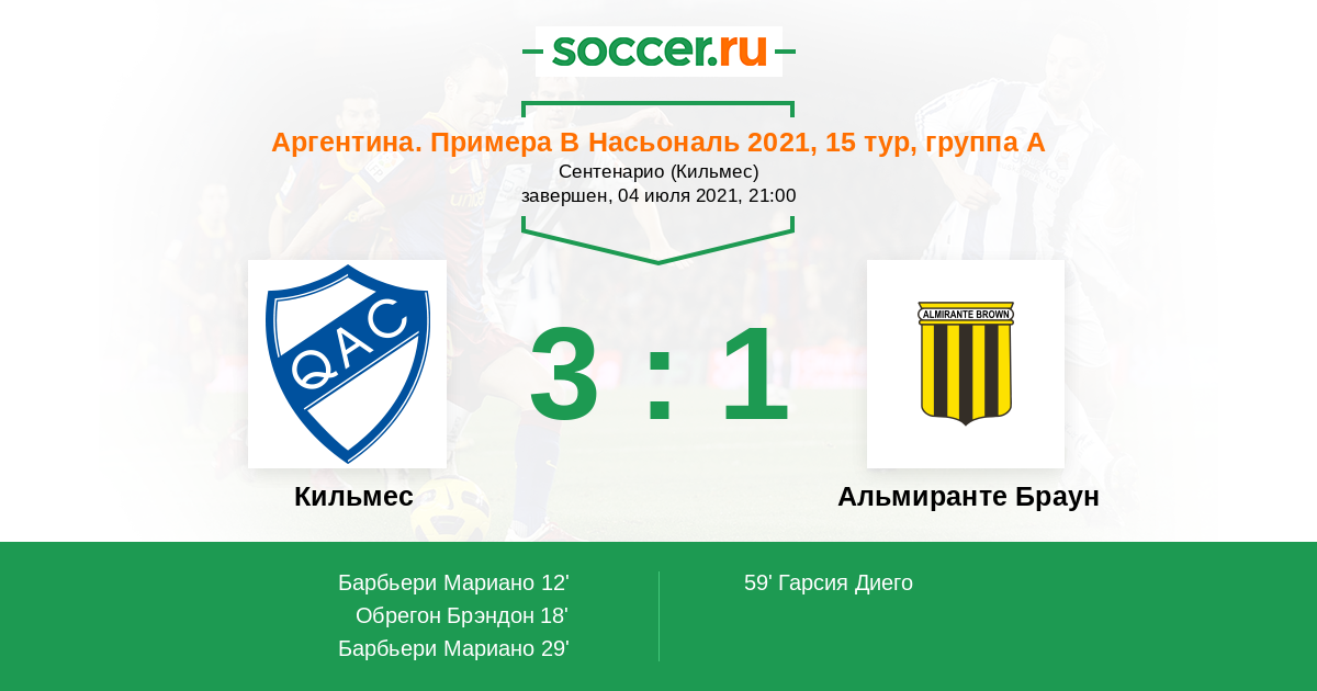 Протокол матча Кильмес против Альмиранте Браун