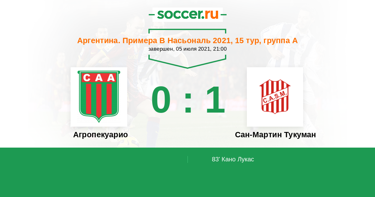 Протокол матча Агропекуарио против Сан-Мартин Тукуман