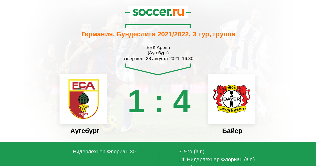 Почему такой прогноз? Интересная статистика противостояния этих команд: клубы сыграли между собой 21 раз. В них Аугсбург одержал 0!!! побед. Не вижу почему традиция должна нарушиться. Аугсбург стартовал неуверенно, чего нельзя сказать про Байер.