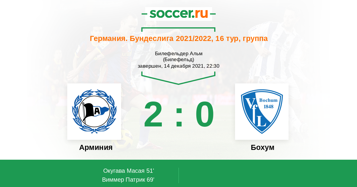 Протокол матча Арминия против Бохум