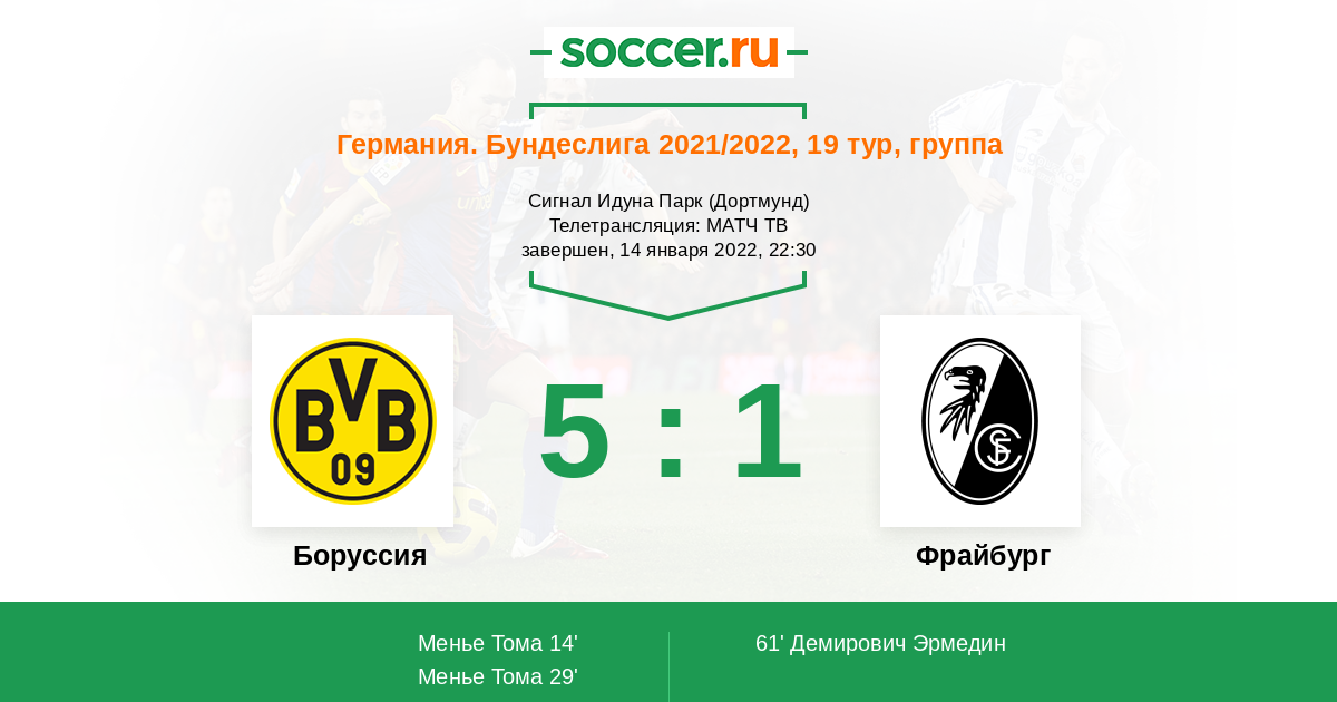 Протокол матча Боруссия против Фрайбург