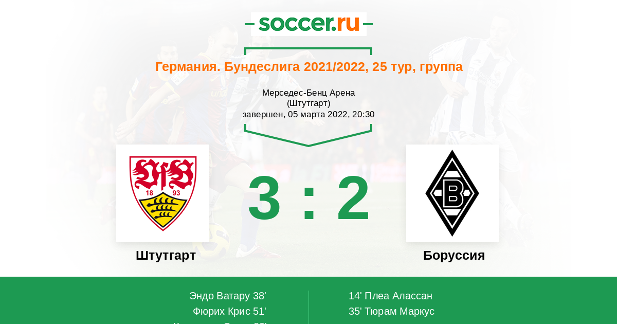 Протокол матча Штутгарт против Боруссия