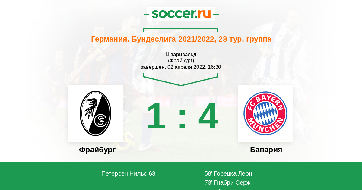 Протокол матча Фрайбург против Бавария