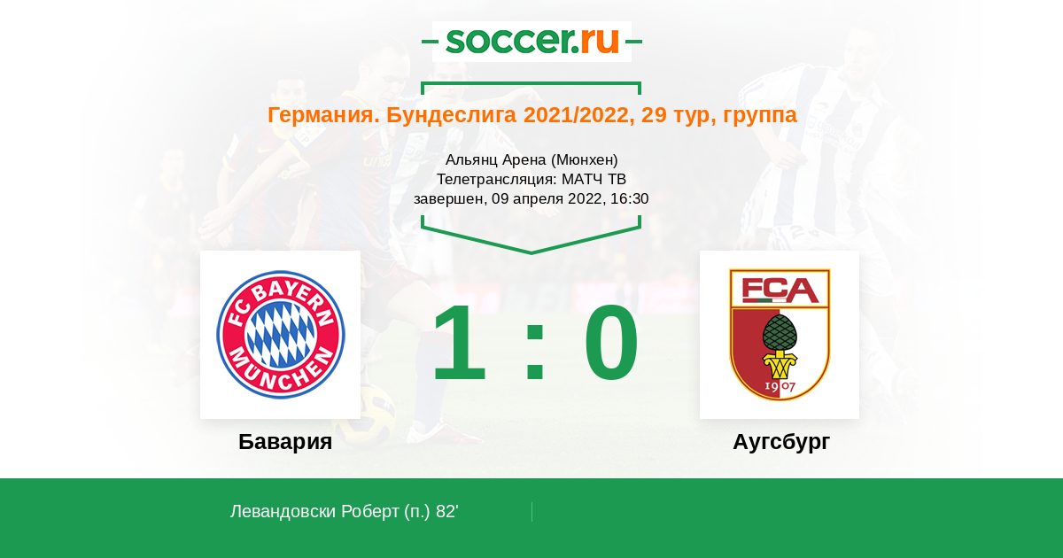 Протокол матча Бавария против Аугсбург