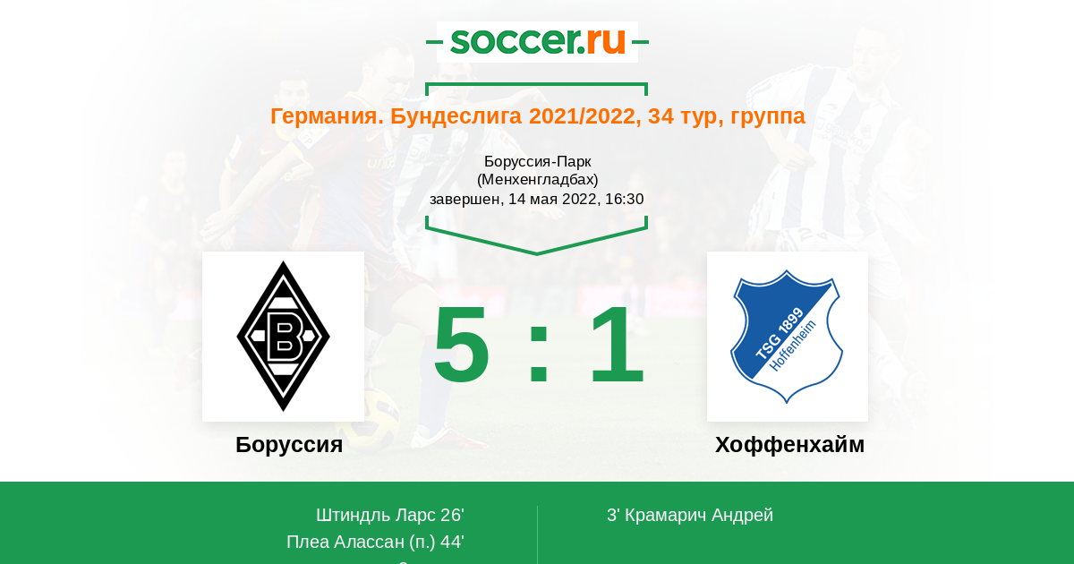 53' (4:1) Эмболо Брель (36) (Хофманн Йонас (23))