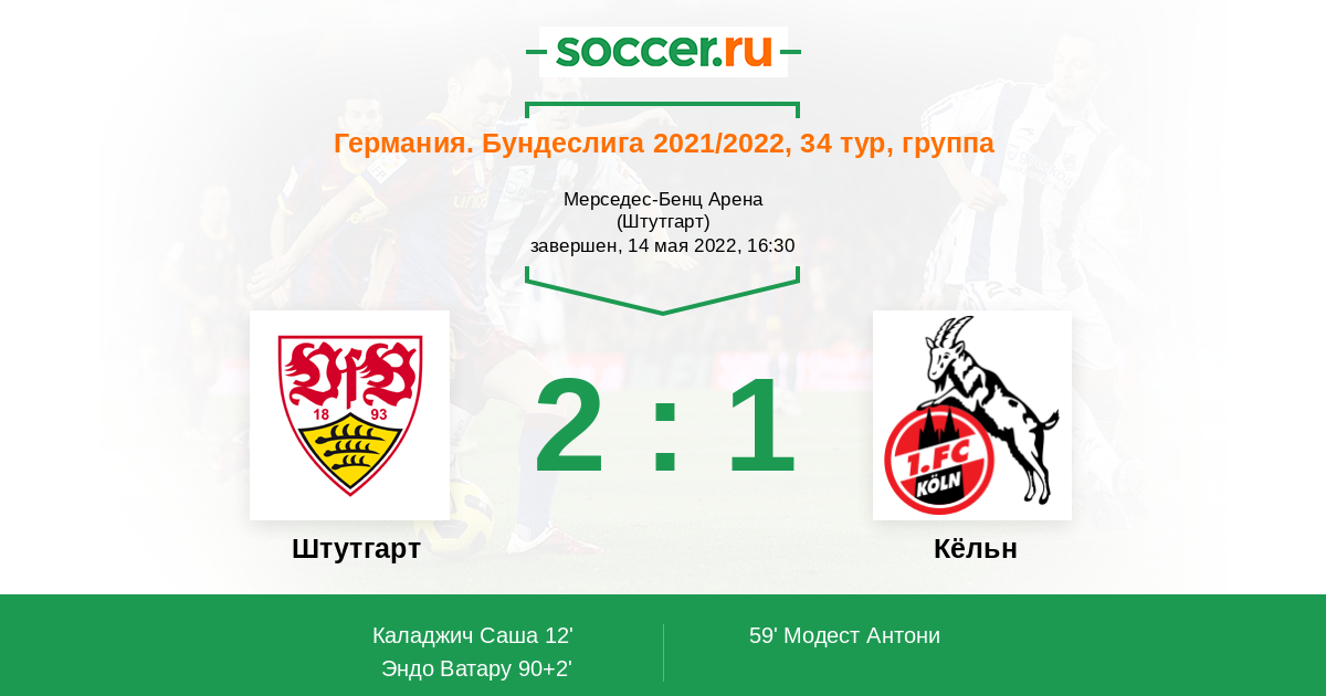 Протокол матча Штутгарт против Кёльн